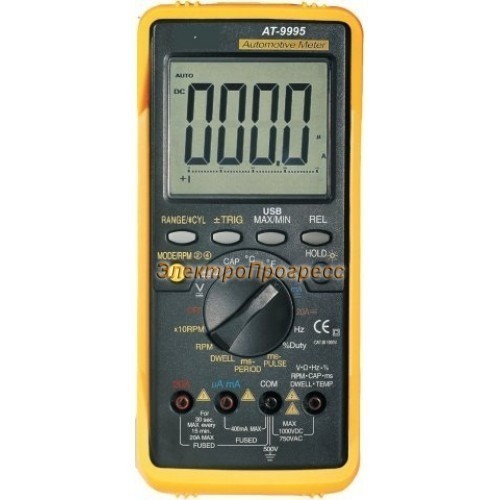 Профессиональный автомобильный мультиметр СЕМ AT-9995E 481547 используется для измерения напряжения, сопротивления, емкости, температуры, скорости вращения, частоты, УЗСК. Многофункциональный прибор успешно заменяет собой универсальный мультиметр и тестер автомобильных систем. Выбор диапазона измерений осуществляется автоматически. Есть возможность отображать показания в виде графической шкалы.U пост./перем. 750В, погр.2%, I пост./перем. 20A, погр. 2.5%, измерение сопр. 40МОм, ёмкости 100мкФ, Частота: 30кГц, ЖК-дисплей 4000 отсчетов, термопара тип К, измерение частоты вращения, USB, ПО